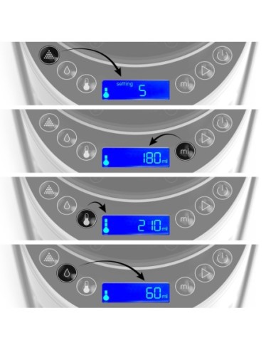 Puoi personalizzare le impostazioni dal pannello digitale per creare automaticamente un biberon con latte in formula caldo all’istante.