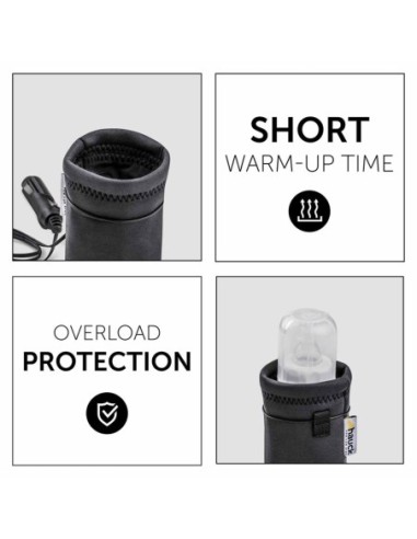 Questo scalda biberon compatto è costruito in neoprene elastico durevole ed è munito di un elemento riscaldante unico.