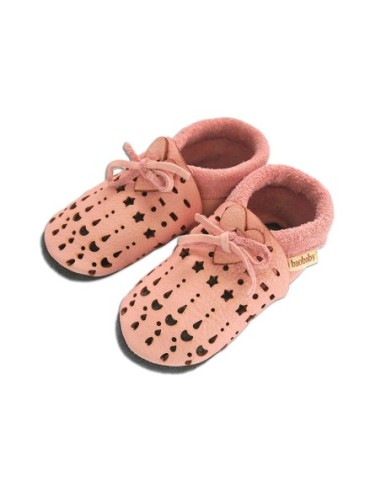 Realizzato in vera pelle conciata al vegetale di prima qualità, sicuro per i piedi nudi dei bambini.
