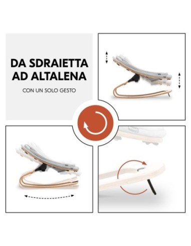 Con un solo gesto è possibile trasformare la sdraietta in altalena. Oppure fai fare uno scatto al seggiolone. Un prodotto – 3 possibili applicazioni!