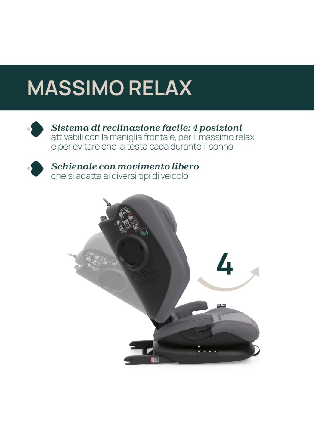 4 posizioni reclinabili con un’ampia inclinazione per offrire il massimo comfort durante i viaggi.