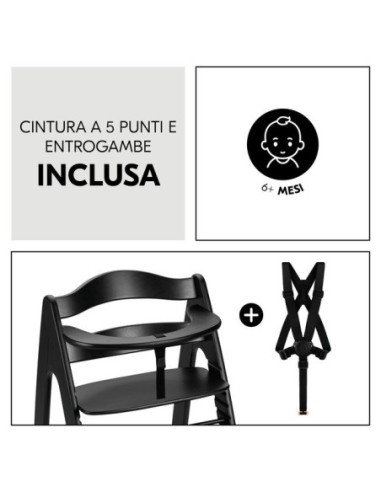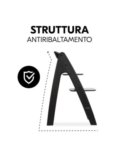 Tutto ciò di cui il tuo bambino ha bisogno per sedersi in modo sicuro è: cinturina entrogambe, imbracatura a 5 punti e barra anteriore. Anche Arketa è progettato per essere antiribaltamento. Anche se il bambino si allontana dal tavolo, la sedia scivola delicatamente all'indietro grazie ai piedini ai e rimane stabile.