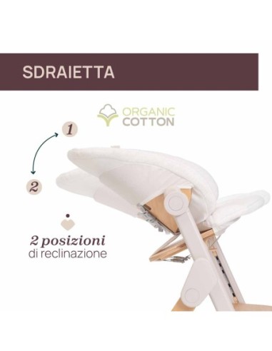 Il tessile della sdraietta è in cotone biologico, per offrire il massimo della morbidezza e del comfort.
