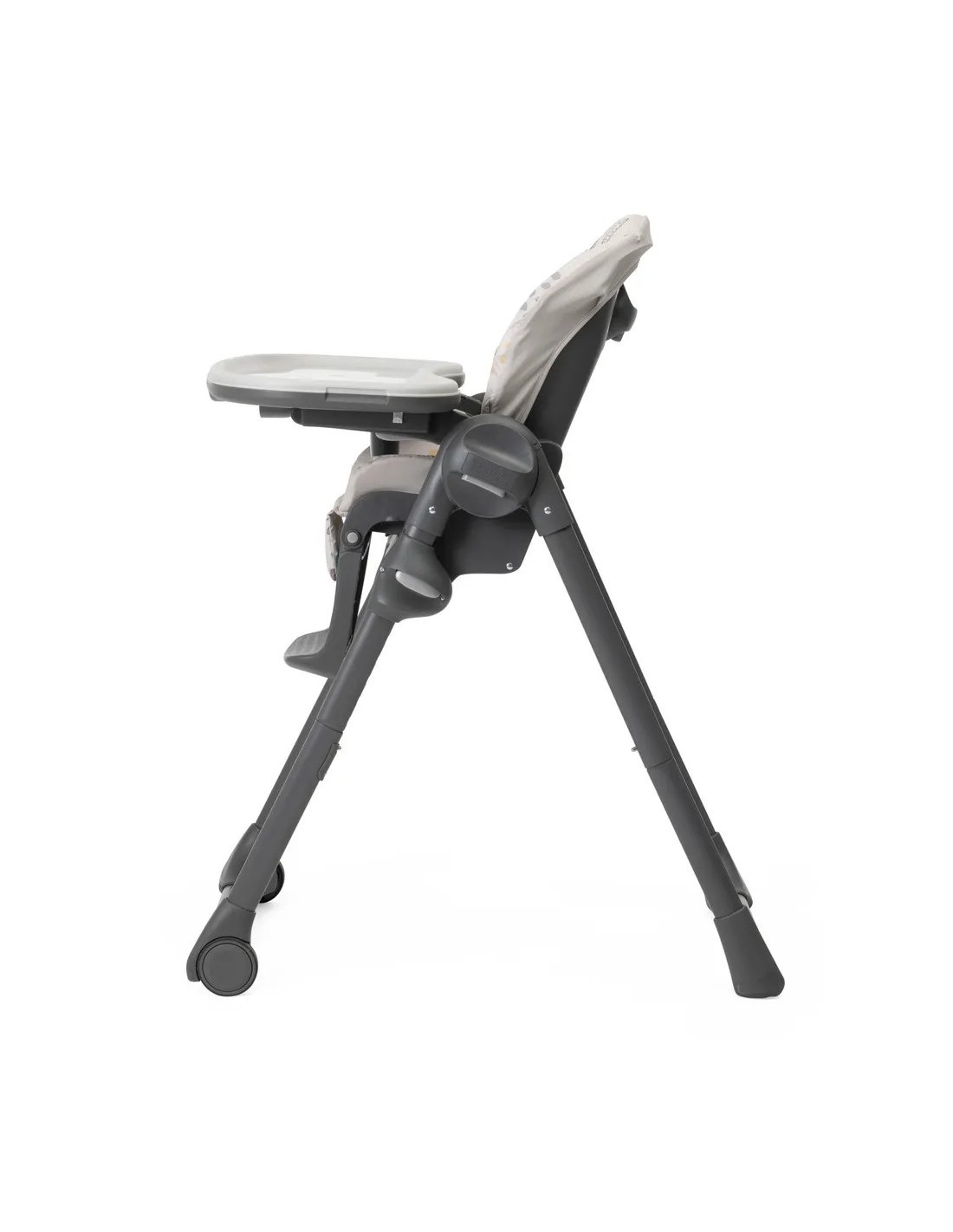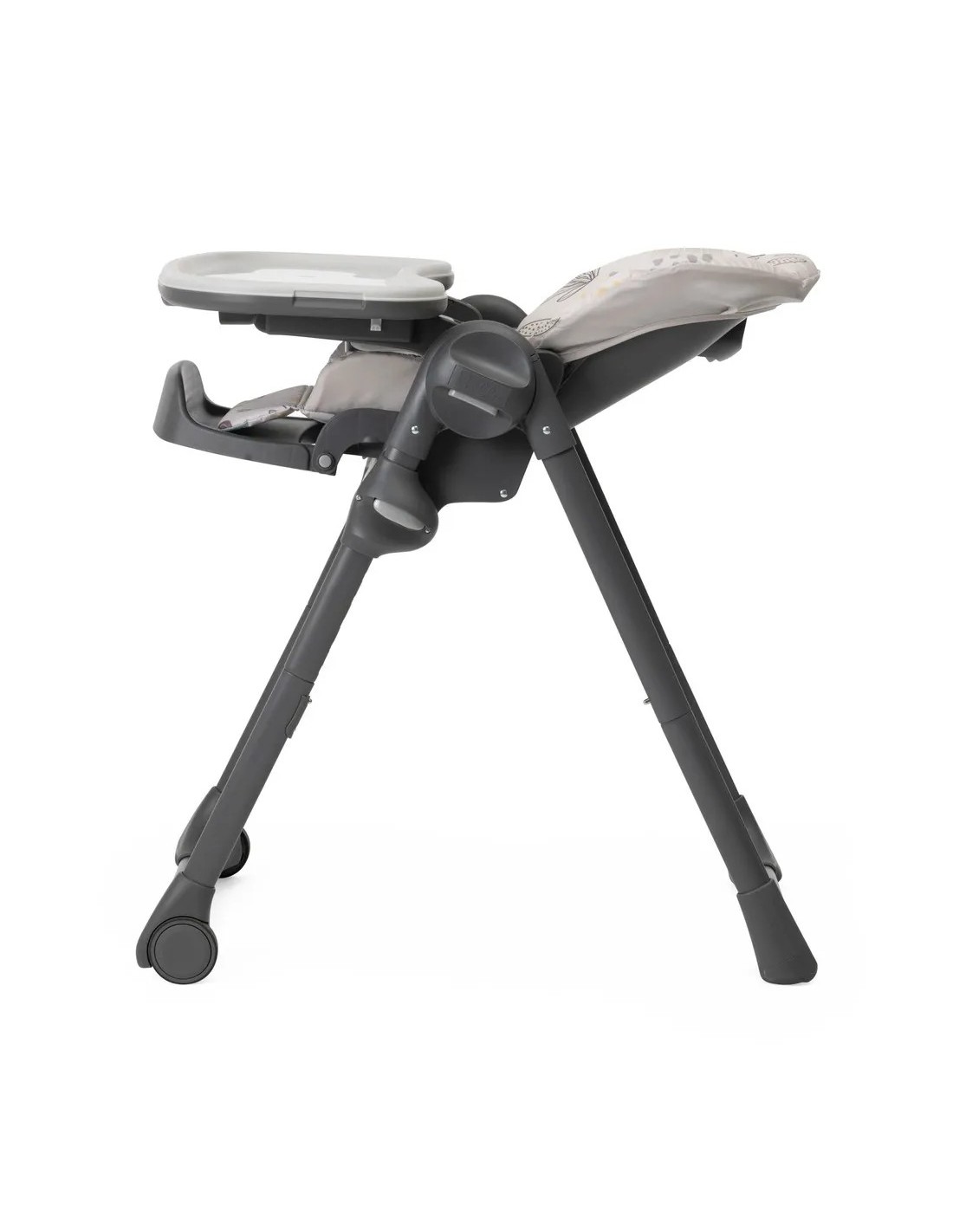 La mobilità è garantita da 4 ruote piroettanti e frenabili, perfette per spostare il seggiolone in casa senza sforzo, anche quando è chiuso. Il seggiolone è inoltre dotato di vassoio removibile e regolabile, utile per i pasti ma anche per momenti di gioco o attività con il bambino.