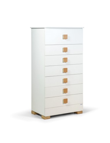 Realizzato con materiali naturali e sicuri, questo elegante mobile a sette cassetti è perfetto per riporre vestiti, giocattoli e tesori.
