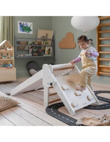 Sfida il tuo bambino con un divertente triangolo da arrampicata in legno che può essere regolato su due altezze, permettendogli di “crescere” insieme allo sviluppo fisico del bambino.