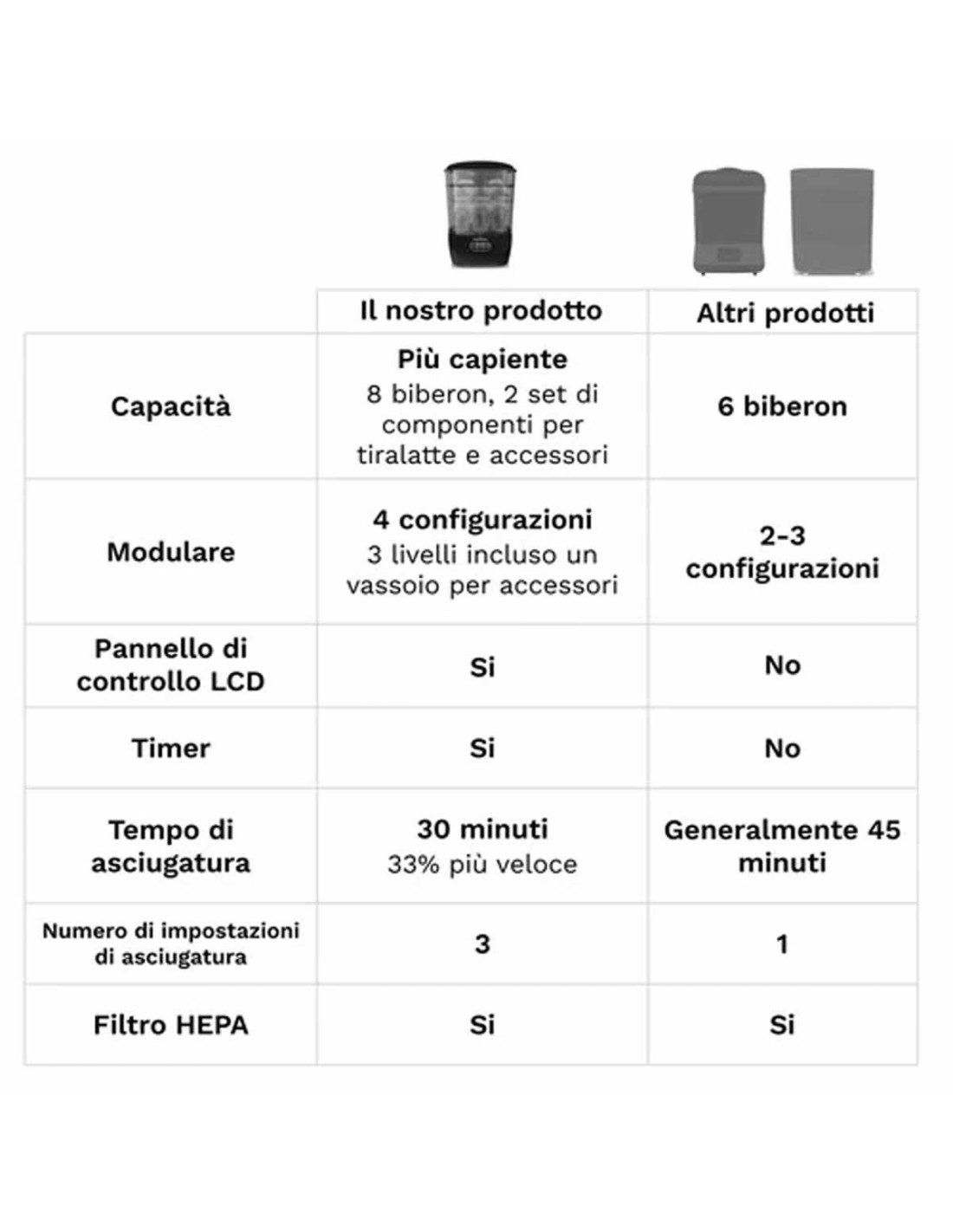 - Il modo più avanzato per sterilizzare e asciugare biberon e parti del tiralatte.