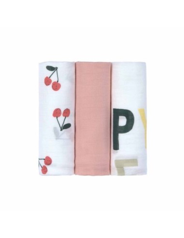 I panni in mussola 80 x 80 cm con i disegni Happy Fruits sono versatili, sia come panno per il ruttino che per le coccole.