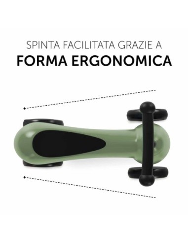 A partire dai 18 mesi, bambini e bambine possono scoprire i loro dintorni sul comodo veicolo a quattro ruote. La forma ergonomica che diventa più sottile dietro, facilita la guida ed impedisce alle gambe del bambino di entrare in contatto con le ruote posteriori. Sul 1st Ride Four, il tuo bambino può allenare agilità, motricità e coordinazione solamente giocando.