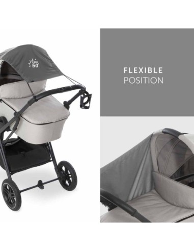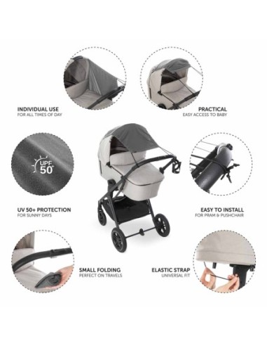 Compatibile con ovetto, carrozzina e passeggino Un unico prodotto da utilizzare con tutto. Sunshade è universale. È compatibile con ovetti, carrozzine e passeggini (dimensioni: 64x32/46 cm). Ti farà compagnia a lungo.