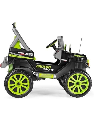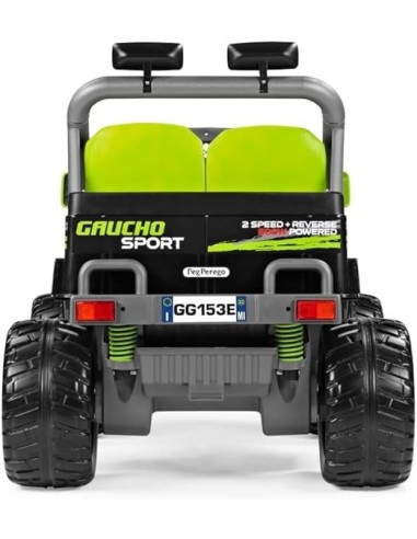 Gaucho Sport è il fuoristrada elettrico a due posti dedicato ai bimbi avventurosi dai 3 anni. La sua batteria ricaricabile da 12V/12Ah/150Wh muove due motori da ben 240W ciascuno. Il suo sterzo a cremagliera offre una sterzata precisa e sicura, qualità che solo Gaucho possiede. Avventure no-limits su strada, prato, terreni sconnessi, superando dislivelli del 17% e perfino sul bagnasciuga grazie ai potenti ammortizzatori sulle ruote posteriori che rendono la guida comoda. Agile e facile da utilizzare, Gaucho Sport è costruito per durare secondo la filosofia Peg Perego. L’utilizzo di materiali di alta qualità garantiscono lunga durata nel tempo ed estrema sicurezza.